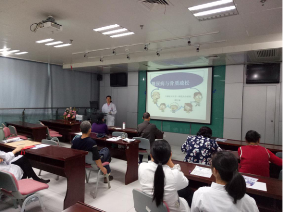 10月19日下午3:00,由内分泌风湿免疫党支部主办的“2016年世界骨质疏松日”科普讲座于医院绩溪路门诊三楼宣教室召开。我院内分泌科的代芳副主任医师、胡红琳主任医师以及风湿科徐胜前主任医师分别作了“骨质疏松的防治”、“糖尿病与骨质疏松”、“预防跌倒,预防骨质疏松骨折”的科普讲座,宣教室内座无虚席,到场的患者认真听课,积极提问,讲座受到了一致的好评。