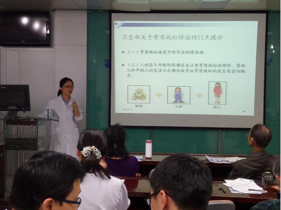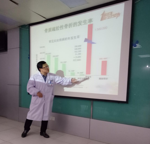今年10月20日是第20个世界骨质疏松日,今年的主题是“爱惜骨骼,守护未来”。骨质疏松已成为困扰老年人群的隐形杀手,影响他们的生活质量。此次讲座其宗旨是为了让广大群众认识到骨质疏松的普遍性及危害性,使患者早期发现、早期治疗,最大程度的减少对中老年人的危害。