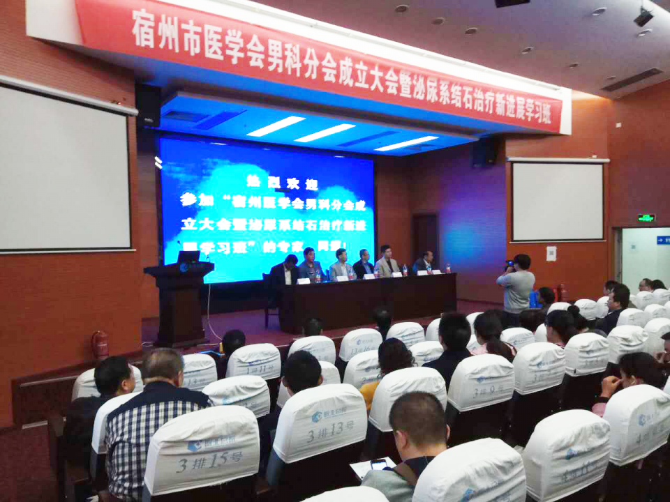 宿州市医学会男科分会成立大会暨泌尿系结石治疗新进展学习班于10月15日在皖北煤电集团总医院召开,我院泌尿外科张贤生主任应邀参加会议,并代表安徽省医学会泌尿外科分会主任委员梁朝朝教授对宿州市医学会男科分会的成立表示祝贺,在成立大会仪式结束后,做了“血精的诊治”学术报告。
