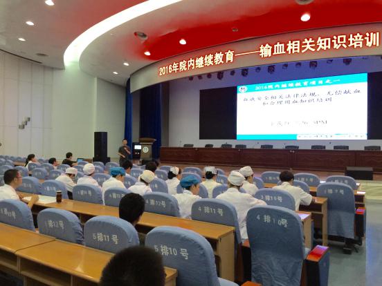 7月26日下午3点,我院输血科主任卞茂红在内科医技楼会议中心进行了血液安全相关法律法规、无偿献血知识和合理用血知识的培训,约三百五十名院内医师、实习医师及规培学员参加了本次培训。培训采用了课堂知识与互动的方式,内容涵盖血液安全相关法律法规、无偿献血知识和合理用血等,旨在提高我院医务工作者的血液相关法律意识等能力。学员们认真听讲做笔记,不时与卞主任交流互动,气氛热烈。 (输血科 胡海亮)