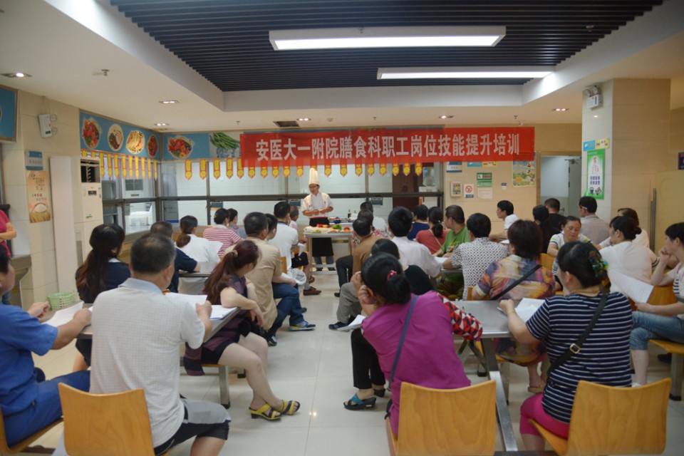 7月12—16日,我院膳食科邀请了省内知名的中式烹调高级技师和面点高级技师为该科职工举办技能提升培训,约五十名后勤职工参加。培训采用了课堂知识与实际操作相结合的方式,内容涵盖多个菜系的代表菜品及不同种类的面点制作,旨在提高后勤职工的厨房管理知识和实践操作技能。学员们认真听讲做笔记,不时与讲师交流互动,气氛热烈。