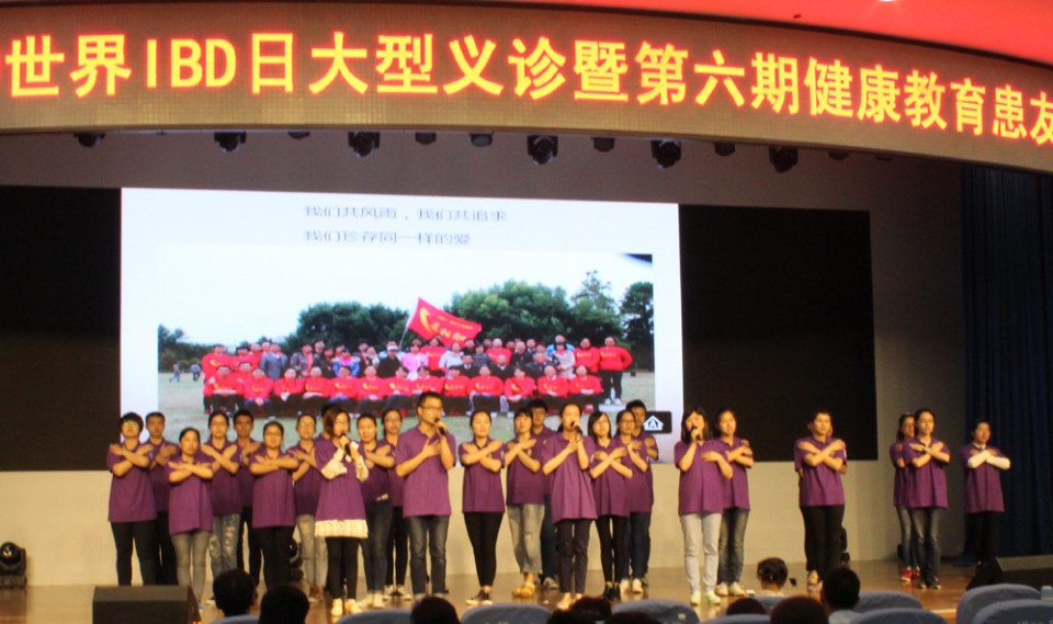 为纪念5月19日全世界炎症性肠病日,我院消化内科IBD团队医护人员与IBD患者在内科楼四楼举办了大型义诊、健康宣教活动暨患友会。活动开始,在IBD诊治难点问与答环节中,患者及家属与现场医护人员积极互动,现场抢答获得礼品,场面十分活跃。随后,在患者及家属自我讲述心路历程以及胡兴护士讲述患者真实故事时,医患与病魔作斗争的场景生动再现,在场很多人被感动得热泪盈眶。活动最后,患者和医护人员共同演唱了《明天会更好》和《阳光总在风雨中》两首歌曲。本次健康宣教活动共有近两百名患者及家属,二十名医护人员以及三十二名志愿者参与,是全国的IBD患教会中人数最多,规模最大的一次。