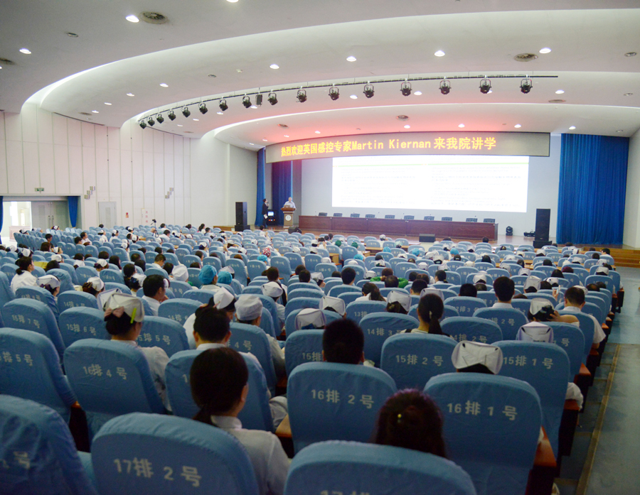 5月31日上午英国感染预防协会(IPS)会长,医疗卫生感染协会(HIS)教育委员会主席Martion Kiernan教授来我院进行“污染的环境表面可以造成多重耐药菌传播”讲座,全院各临床医技科室共500余人参加了会议。