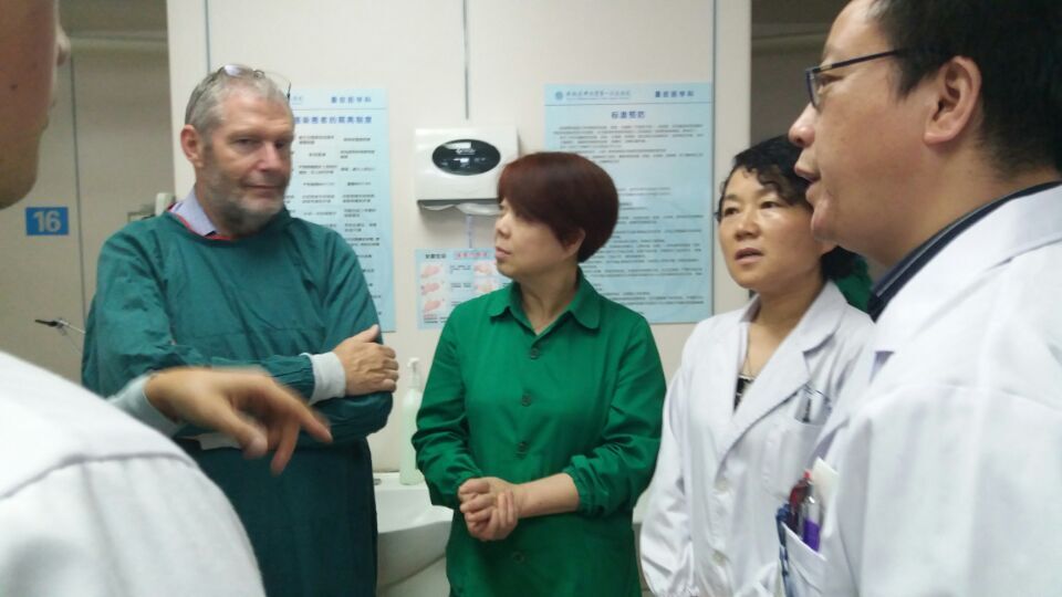 会上Martion Kiernan教授从循证医学角度提出关注环境表面,强调清洁消毒是一项非常重要的感控措施,应使用正确的方法对环境进行去污才能有效地降低医院感染。 下午Martion Kiernan教授受邀在我院中心ICU与医院感染重点部门部分医护人员进行进行了现场交流及工作指导,医护人员就消毒剂的选择、床单位的消毒方法、重点部门物品,环境消毒方式等实际工作问题与Martion Kiernan教授进行了交流,现场讨论气氛热烈,达到了预期效果。