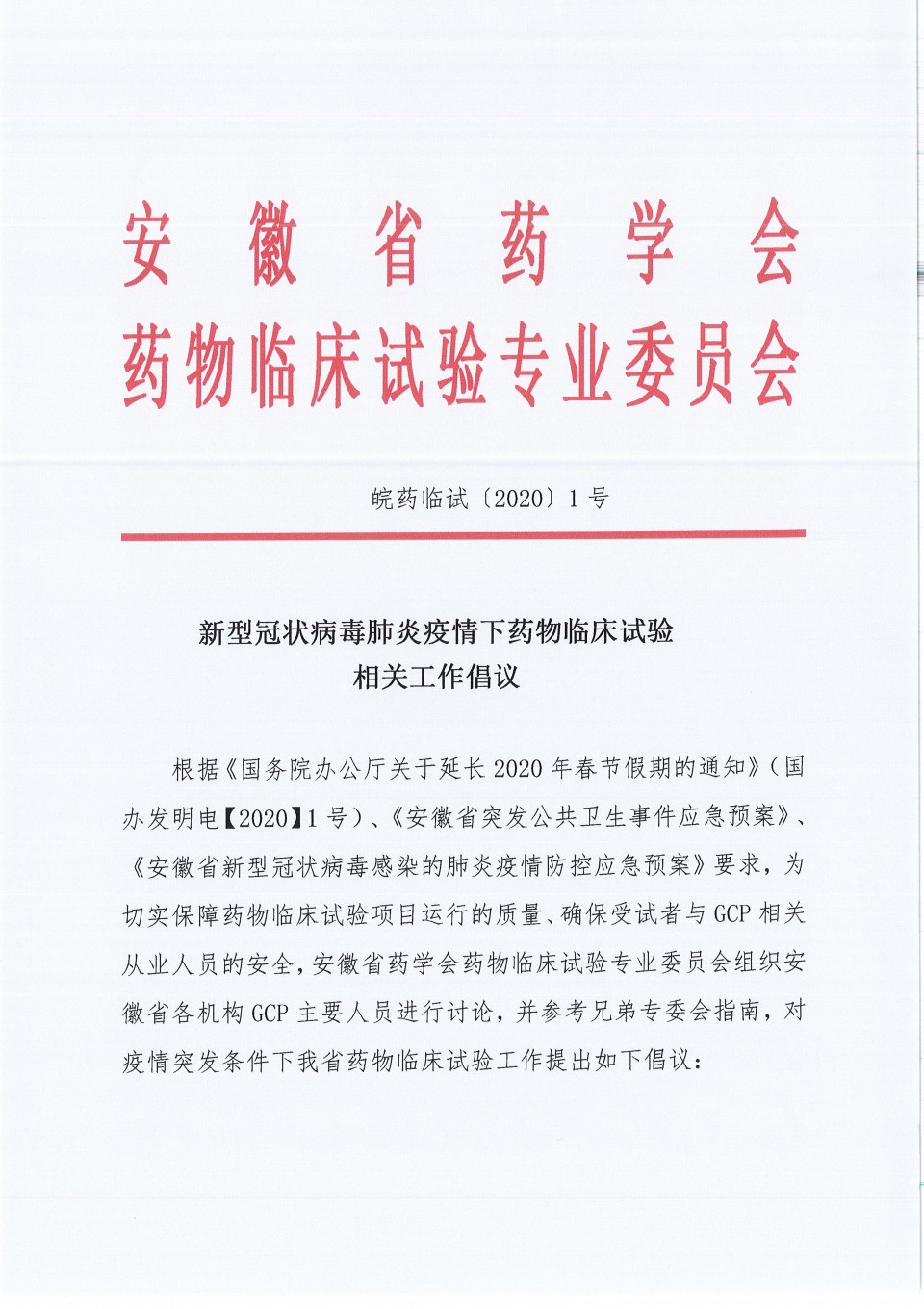 新型冠状病毒肺炎疫情下药物临床试验相关工作倡议.pdf