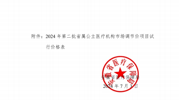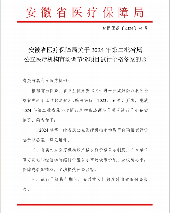 关于2024年第二批省属公立医院医疗机构市场调节价项目试行价格备案的函