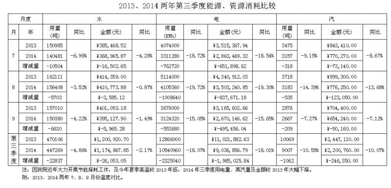 (2013、2014两年第三季度能源、资源消耗比较)