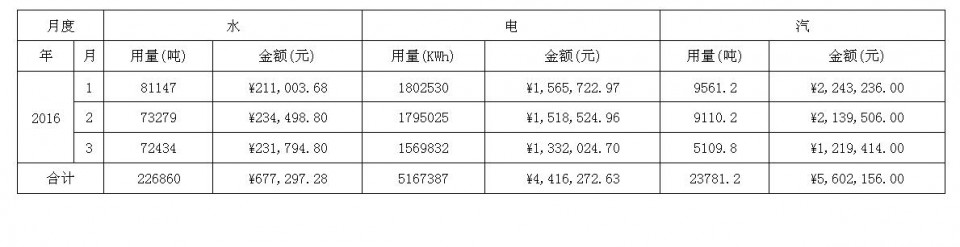 2016年一季度能源资源消耗公示