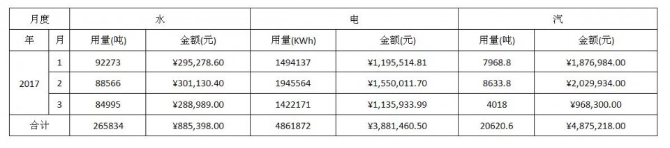 2017年一季度能源资源消耗公示