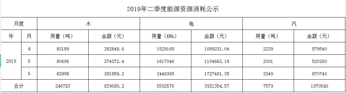 2019年二季度能源资源消耗公示