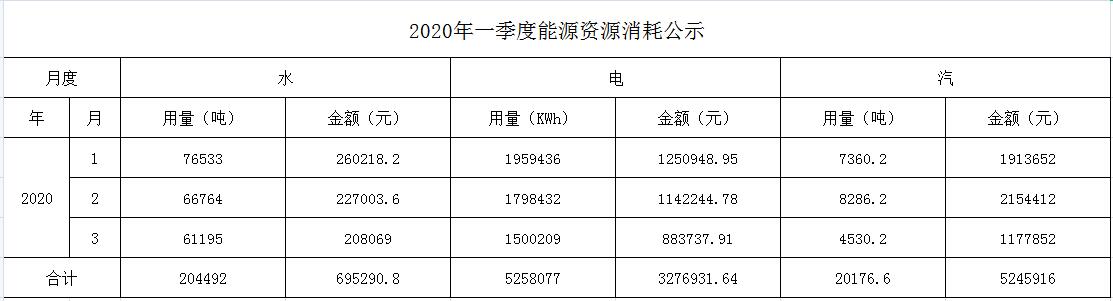 2020年一季度能源资源消耗公示