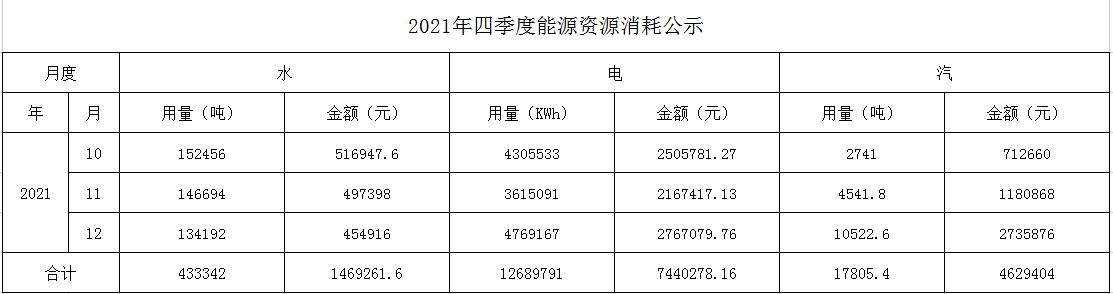 2021年四季度能源资源消耗公示