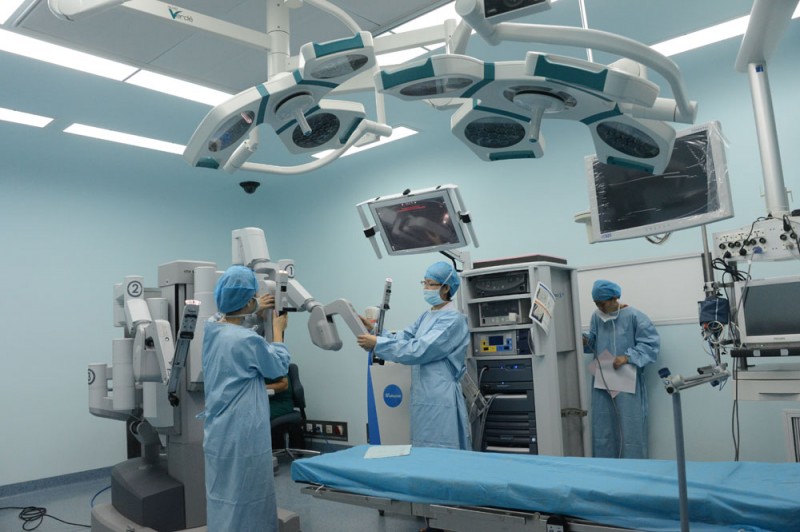 2014年9月23日,我省首台达芬奇手术机器人(内窥镜手术器械控制系统)落户我院,安装调试成功后于9月24日开展第一台手术。手术机器人的引进,对我省医学发展特别是外科领域的整体水平提升有着里程碑式的作用。手术机器人是当今最先进的微创外科治疗平台,相比较传统的开放手术以及腹腔镜手术,不仅可以完成电视腔镜所能完成的简单的外科微创治疗,还可以实施复杂的高难度的外科重建手术,具备明显的优势: