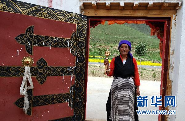 西藏墨竹工卡县农民群曾卓嘎走进自家的安居房(7月4日摄)。据了解,从2006年起,西藏在全区范围内实施大规模农牧区房屋新建和改造工程——安居工程。截至目前,安居工程覆盖西藏全区27.48万户、140万农牧民,已完成投资170亿元。新华社记者 觉果 摄