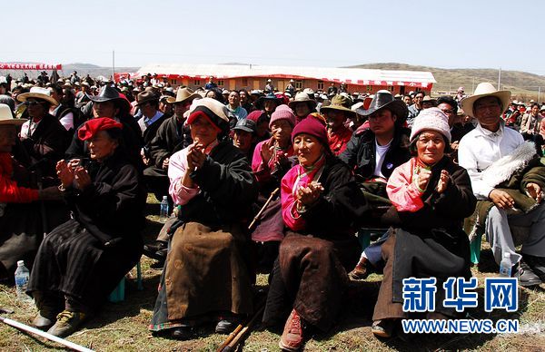 四川阿坝州红原县群众正在参加“阿坝州扶贫开发和综合防治大骨节病”试点启动仪式(2008年5月6日摄)。