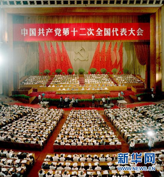1982年9月1日至11日,中国共产党第十二次全国代表大会在北京隆重举行。这次大会是在拨乱反正任务基本完成和改革开放取得初步成效的新形势下召开的。邓小平在大会开幕词中,第一次提出了“把马克思主义普遍真理同我国的具体实际结合起来,走自己的道路,建设有中国特色的社会主义”的崭新命题。十二大报告制定了全面开创社会主义现代化建设新局面的奋斗纲领,确立了党在新的历史时期的总任务。家喻户晓的“翻两番”目标,就是这次大会上提出的。图为大会会场。新华社发(资料照片)