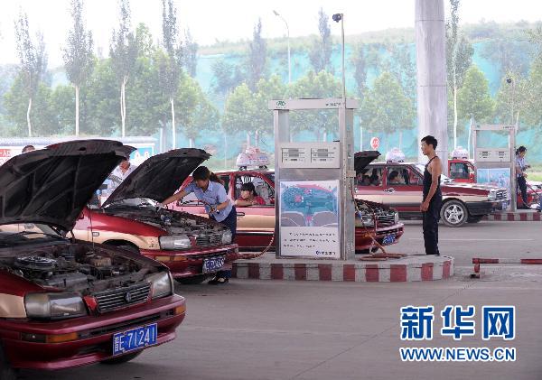 2008年7月23日,山西晋城市一处煤层气加气站的工作人员在为汽车加气。新华社记者燕雁摄
