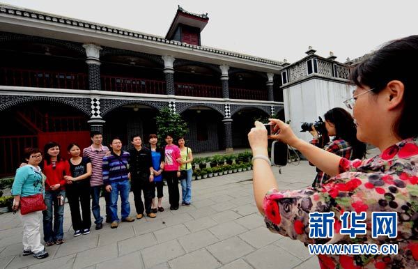 5月13日,在贵州遵义会议会址前,一些游客在拍照留念。 新华社记者 杨楹摄