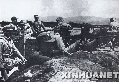 图为中国军队在卢沟桥抗击日军的进攻。1937年7月7日夜,驻丰台日军在卢沟桥畔中国守军防区内进行军事演习。演习结束后,日军借口失踪一名士兵,无理要求进入中国军队防守的宛平城搜索,遭到中国守军的拒绝。日军遂向位于桥东的宛平城和卢沟桥发动攻击,挑起了蓄谋已久的卢沟桥事变。中国守军第29军官兵在日军蛮横无理的挑衅和攻击下,忍无可忍,奋起抗击,打响了全民族抗战的第一枪。 新华社发