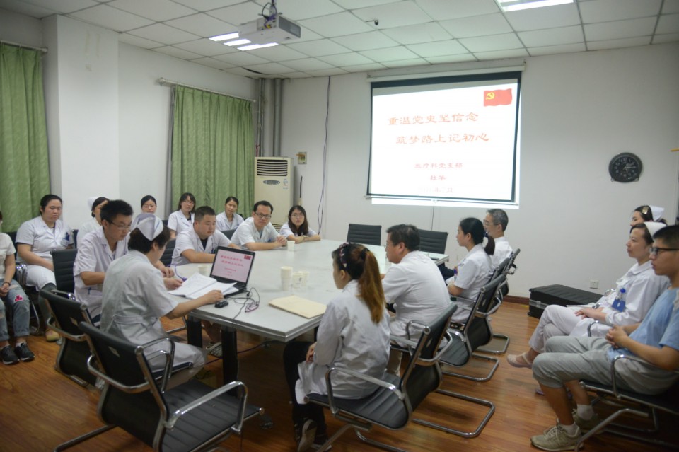 7月14日下午,肿瘤放疗科党支部在西区病房楼一楼会议室召开“两学一做”主题支部大会,由杜华书记主持。
