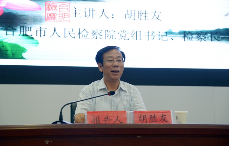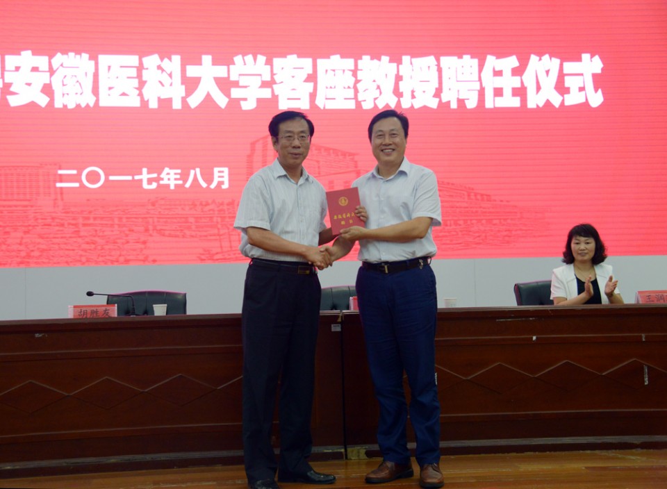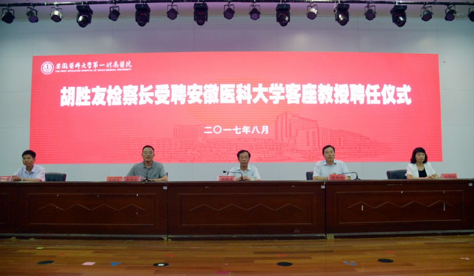 8月2日下午,安徽医科大学客座教授聘任仪式在我院会议中心举行,合肥市人民检察院党组书记、检察长、一级高级检察官胡胜友正式受聘为安徽医科大学客座教授,并应邀作《增强廉洁自律意识 提高拒腐防变能力》专题辅导报告。在院院领导,行政后勤、临床医技科室、教研室、研究所负责人,党总支书记、党支部书记、党总支委员、党支部委员,护士长,高新分院和部分重点部门重点岗位工作人员以及进修生、规培生等参加了仪式和报告会。
