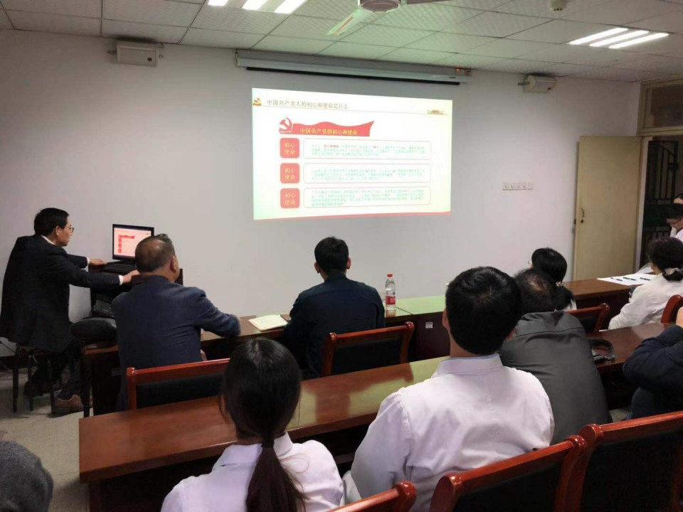 10月29日下午五点,药剂科党支部在中心实验楼三楼会议室组织开展“不忘初心、牢记使命”专题学习。支部书记贾德武给支部全体党员上了主题教育党课,门急诊医技党总支书记李维荣,院主题教育联络指导组第三组成员列席专题学习会议。贾德武以“中国共产党人的初心使命是什么、该怎样做”展开,结合医院药剂科实际,围绕习近平总书记提出“守初心、担使命、找差距、抓落实”的总要求,系统阐述了新时代“四个伟大”的新使命,号召支部全体党员“增强四个意识、坚守四个自信、做到两个维护”全心全意为人民服务。