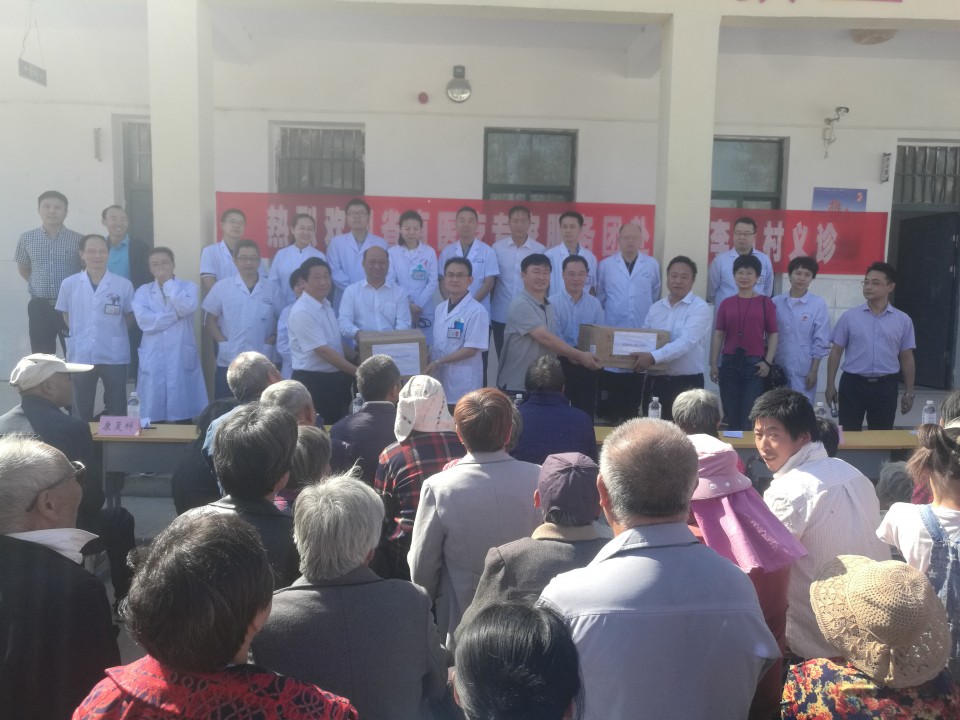 为庆祝新中国成立70周年,以健康扶贫助力精准扶贫工作,9月21-22日,由安医大党委统战部和安徽省直工委统战部联合组织,来自我院妇产科的黄苗苗、耳鼻喉科的吴开乐、心内科的陈大年、感染科的陈国胜、眼科的龚健杨、普外科的于东风、儿科的潘道香、消化内科的王亚雷、骨科的胡勇、肿瘤科的李敏、医学影像科的吴兴旺、从事护理的陈晶等十多位专家,利用休息日、不怕日晒和长途行程,奔赴泗县大杨乡李庙村开展健康扶贫惠民义诊活动。