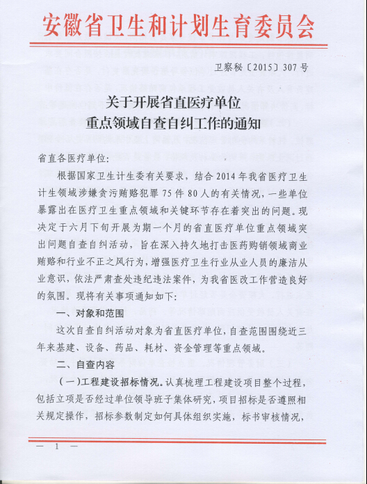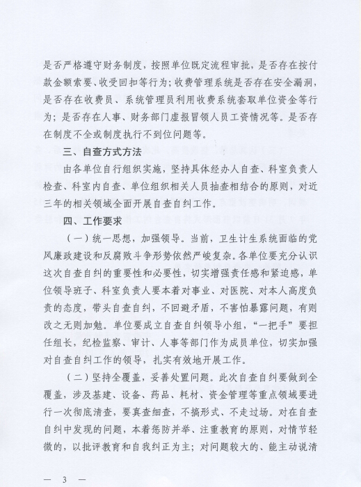 关于开展省直医疗单位重点领域自查自纠工作的通知
