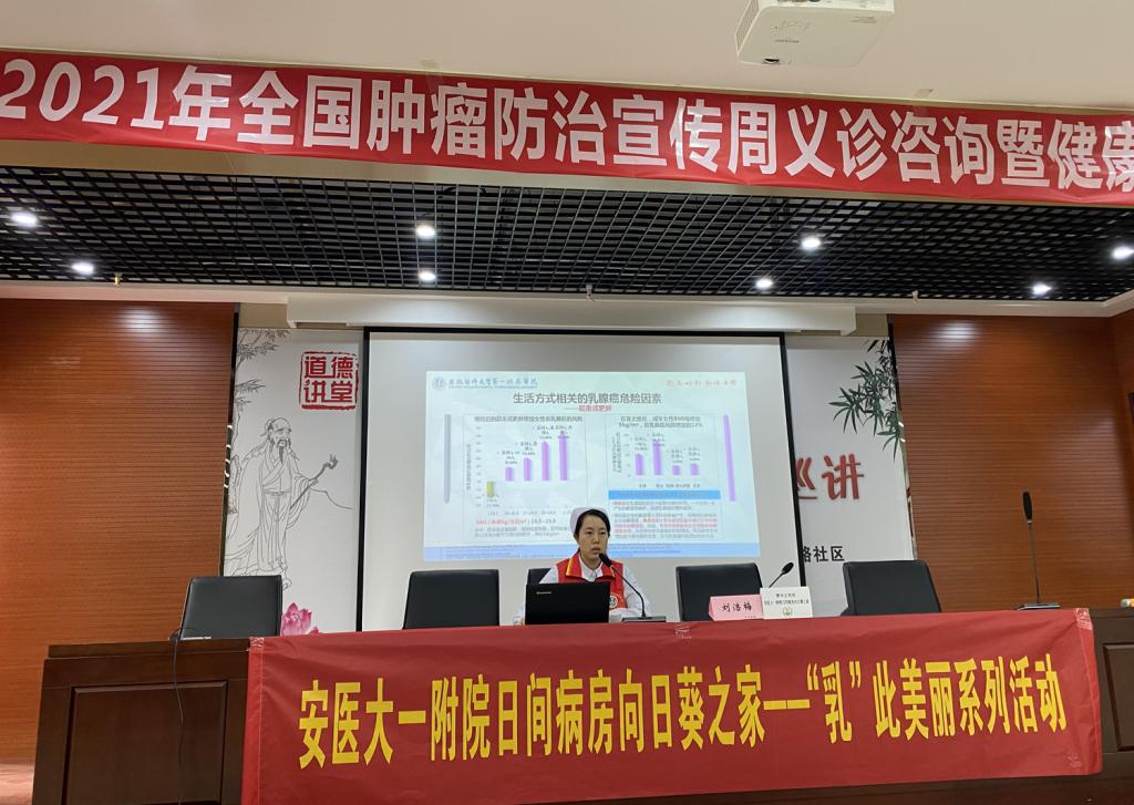 此次科普宣讲公益活动,对国家癌症防治政策、防癌抗癌健康知识进行宣传,引导建立健康生活方式,进一步提高了全民癌症防控意识和广大群众的健康理念和自我保健意识。安医大一附院日间病房“向日葵之家”在公益活动中,宣传肿瘤科普知识,发挥自身专业价值,在积极争创国家级青年文明号的路途上不断前行,让那一抹橙红的马甲穿传播更多的温暖和健康。