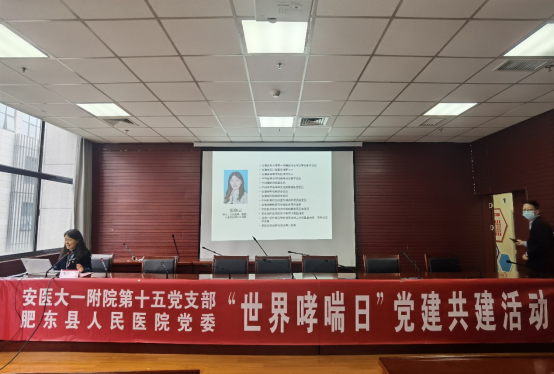 在肥东县人民医院领导的安排下,双方举行了座谈会,相互介绍了支部成员及党建工作情况,干部保健中心第二党支部全体党员参观并了解了医院的发展及人文建设,看到了近三年东区的飞速发展。支部书记范晓云教授做专题讲座——《控制哮喘 自由呼吸》,从哮喘的发病率、临床表现及防治等方面进行讲解,加强了大家对哮喘病现状的了解,以增强患者及公众对该疾病的防治和管理。