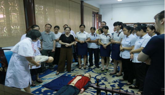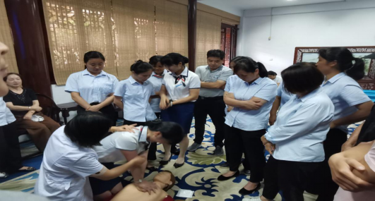 7月16日上午,普外科第二党支部部分党员冒着炎炎烈日来到李鸿章故居,对馆内工作人员进行急救技能——心肺复苏术和海姆立克法的培训。本次培训的对象包括馆内一线服务人员、行政后勤人员等约50余人。培训内容包括典型案例讲解、心肺复苏和海姆立克法的基本理论、操作演示、一对一的操作指导。