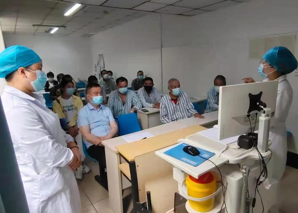 “内防反弹,外防输入,坚决遏制疫情。”病区采取封闭式管理,实行24h小时管控,病房楼入口设立专岗,所有人员均需凭证进入。病区内,支部党员对患者及家属不定期进行相关知识宣教,加强病区管理,切实落实各项防控工作。