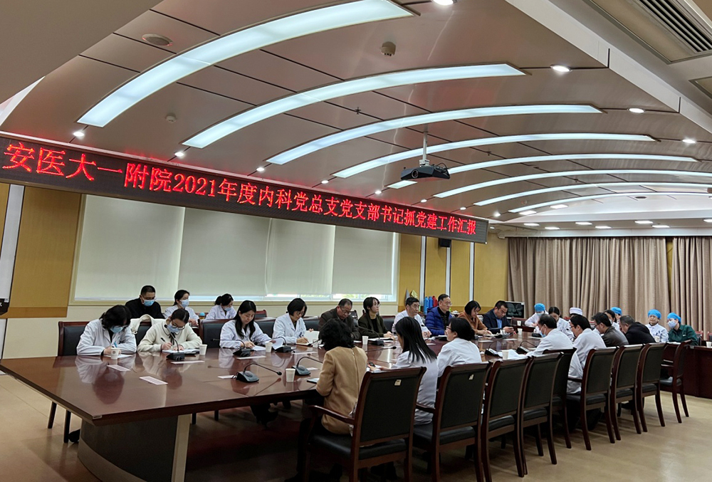 根据院党委统一部署,2022年3月9日上午,医院在干部病房二楼会议室举行内科党总支2021年度支部书记抓党建工作述职汇报会。院党委副书记、副院长刘全礼,党委组织部副部长汪俊兰出席会议,内科党总支支委会成员、各党支部书记以及党员代表等参加会议。