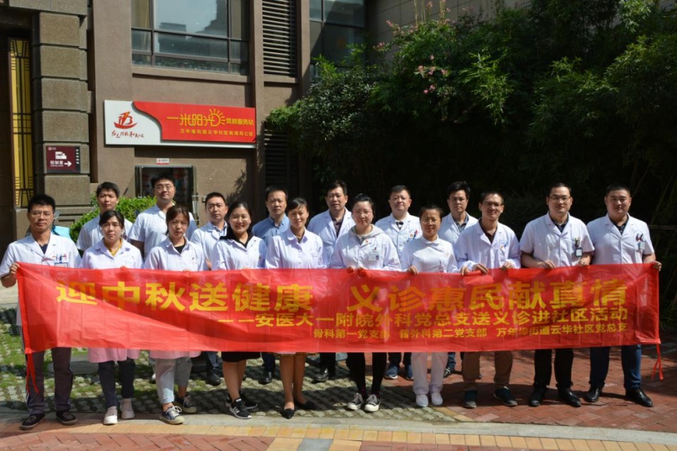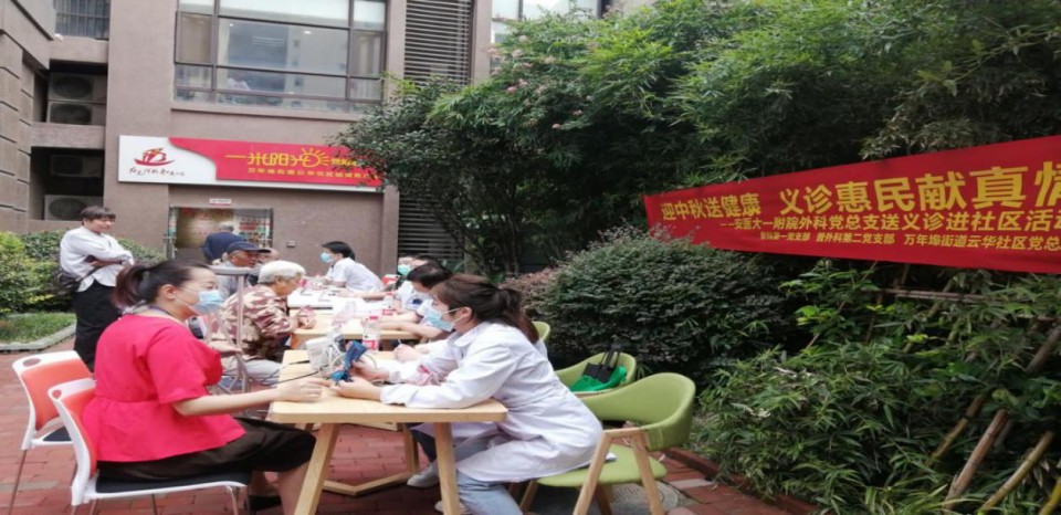 9月19日上午,外科党总支组织普外科第二党支部和骨科第一党支部赴滨湖新区万年埠街道的云华社区开展“健康义诊进社区活动”。