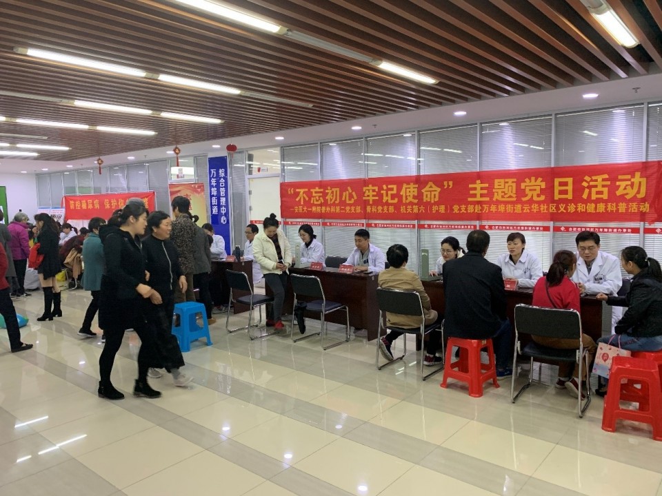 为了深入开展“不忘初心、牢记使命”主题教育,11月16日上午,机关第六(护理)党支部和普外科第二党支部、骨科党支部党员一行30余人前往合肥市万年埠云华社区开展义诊和健康科普活动。