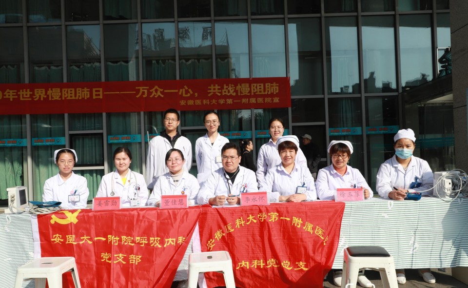 今年11月20日是第十八个“世界慢阻肺日”,为响应慢阻肺日的主题“万众一心、共战慢阻肺”,结合“不忘初心、牢记使命”主题教育,当天一大早,我院呼吸危重症医学科党支部联合干部呼吸科党支部部分党员及所在学科的医护人员,在绩溪路门诊前广场开展义诊和健康宣教活动。