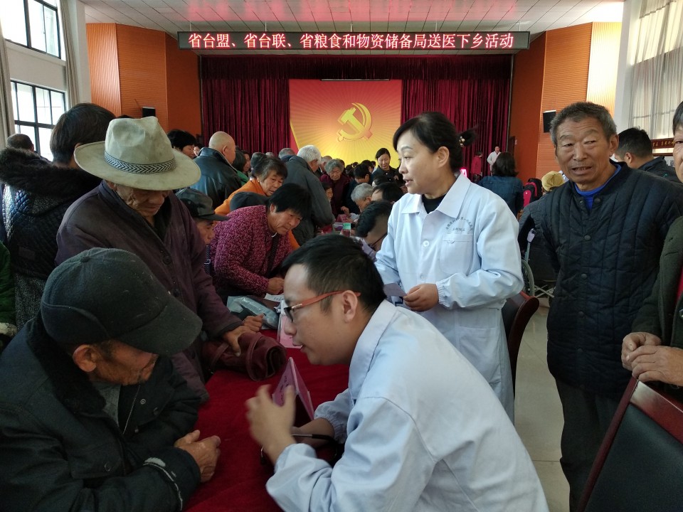 为深入推进“不忘初心,牢记使命”主题教育,应省台盟、省台联、省粮食和物资储备局邀请,11月10日,我院心外科、心内科、普外一、干部保健中心和神经外科等5个党支部,联合50多名党员、医护专家, 在党支部书记林敏、史学功、曹先东、陈曙光的带领下,来到蒙城县庄周街道九里桥村和许疃镇矿西村两个地点,开展“送医下乡到蒙城”大型义诊活动。