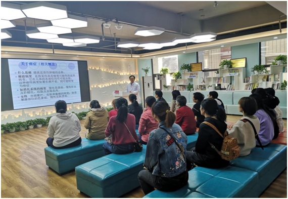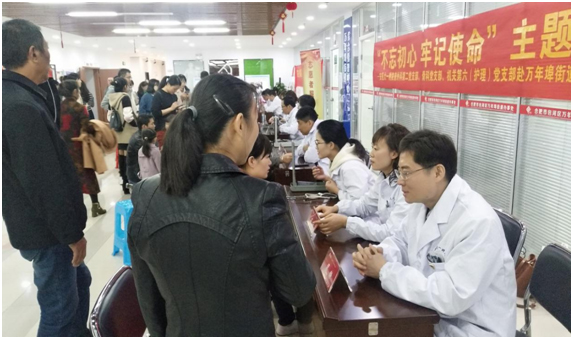 为深入开展“不忘初心,牢记使命”主题教育,学习革命历史,深入领会初心和使命的意义与内涵,11月16日上午,普外科第二党支部联合骨科党支部和机关第六(护理)党支部赴万年埠街道云华社区开展义诊和健康科普活动。上午9:00义诊人员刚到现场,附近的居民早已慕名前来在场等候。本次义诊活动分两个环节,首先由乳腺外科、胃肠外科、骨科组成的专家团队为社区居民视诊,了解居民的基本健康状况,详细耐心地解答健康咨询,并给予检查、治疗指导和建议,来自三个支部的护理人员热情地为居民们测量血压、血糖,做胃肠疾病、乳腺疾病、腰腿痛等疾病预防宣传。接着胃肠外科鲁名典主任做《胃癌科普小常识》讲座,为居民普及胃癌预防相关知识。会议室空无虚席,在座的居民们兴致勃勃专注听讲,最后现场提问解答互动,居民学习气氛热烈。本次义诊受到社区居民和管理人员的热烈欢迎和一致好评,社区负责人提议,希望能经常组织这样的义诊活动,为社区人民提供健康服务,呵护人民健康,上午义诊活动于11:00圆满结束。