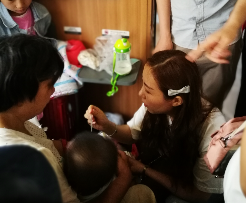 6月29日上午9时,徐州东开往厦门北的G1669次列车在途经合肥南站后不久,3号车厢的一名2岁幼童突发不适哭闹不止,通过列车广播寻找医务人员。刚刚上车的我院口腔科党支部医务人员听到广播,立刻赶到3号车厢患儿所在座位,及时安抚了患儿及家属焦躁的情绪。经过详细问诊及检查,患儿是由于感冒引发高热哭闹不止。医护人员立即给患儿喂服了对症的解热镇痛药物并帮助患儿进行物理降温,经过一系列的紧急处理,患儿的体温逐渐下降至正常,情绪也慢慢平复。此举受到了列车乘客的一致好评。口腔科 韩晓兰