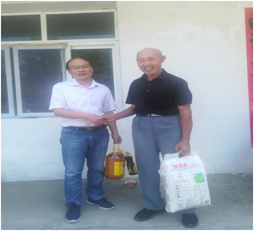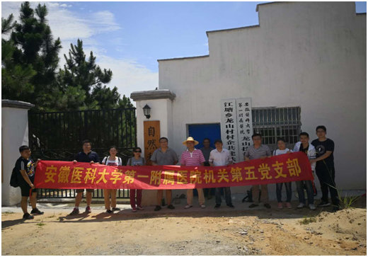 建党97周年前夕,冒着酷暑骄阳,机关第五党支部谢峰书记带领支组全体成员来到太湖县江塘乡龙山村,看望对口支援的贫困户和慰问我驻村扶贫工作队员。龙山村是安医大一附院对口支援的贫困村,在看望慰问现场,谢峰书记转达了第五支部党员们的深情问候,代表党员们将此前募集的捐赠物品移交给扶贫工作队,谢峰书记还入户走访了对口支援的贫困户,并捐赠物资,随后在驻村扶贫工作队员带领下参观了医院帮扶的景湖小黄鸡养殖基地。