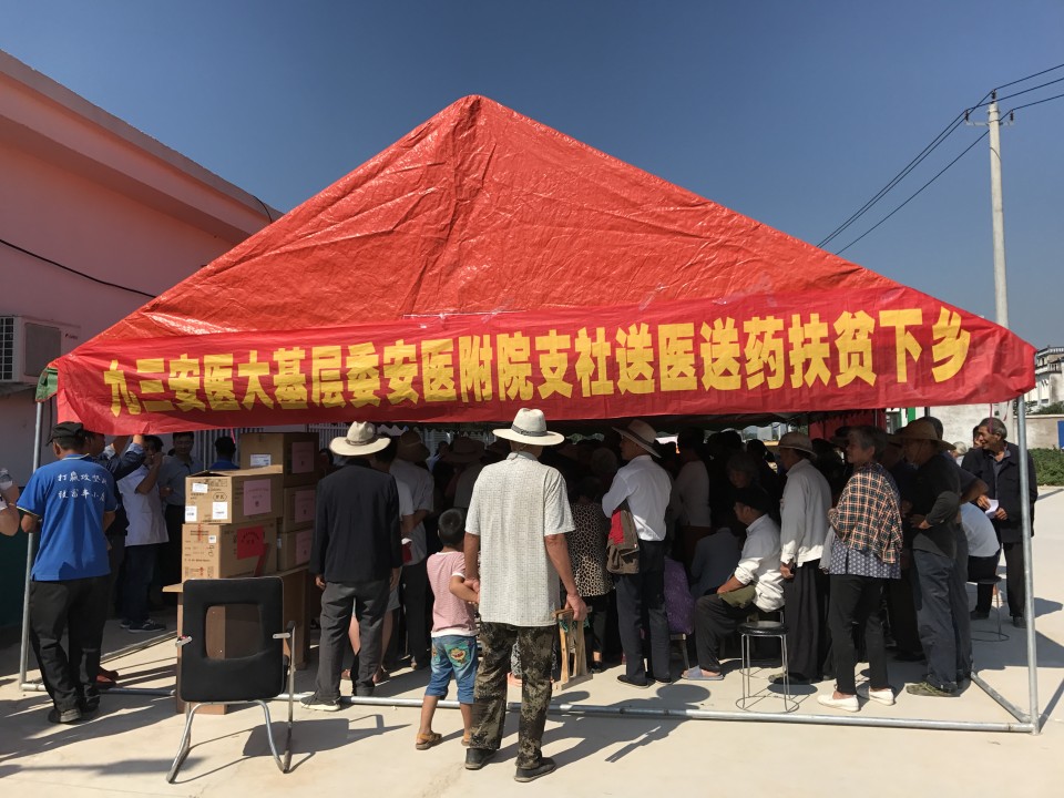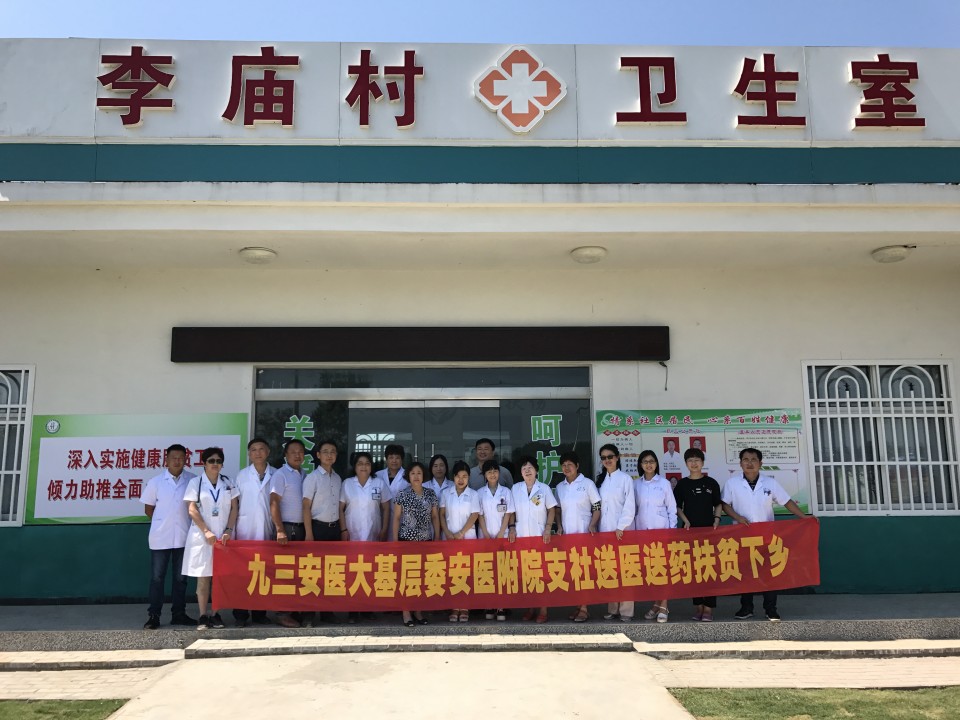 为庆祝九三学社成立73周年,在第34个教师节前夕,由省政府参事、九三安医大基层委安医附院支社主委李俊教授带领10多位九三医疗专家组成的团队参加了由省直工委和安医大党委统战部联合举办赴泗县大杨乡李庙村送医送药扶贫活动。安医大党委统战部部长顾秀平和秘书周丽娜全程参加了活动。在义诊活动现场,村民们早已将村卫生室挤的满满的,争先恐后期盼着专家老师们的到来。专家们立马进入工作状态,连续工作4个多小时接诊500多人次,让前来看病的村民都能看上病,在医疗条件允许的前提下都能看好病。活动现场,专家们还针对群众常发易发的疾病, 免费发放了村民急需实用的治疗药品和健康宣传手册。