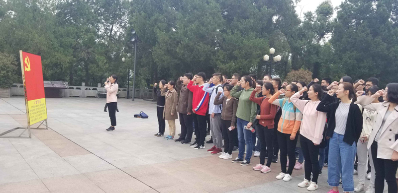 随后,党员们怀着崇敬的心情瞻仰了革命烈士陵园。拾级而上,每一级台阶都代表了一段烽火岁月,大家踏着革命先烈抛洒过热血的土地,心中升起无比的敬意。来到革命烈士纪念碑前,全体党员面向烈士纪念碑深深地三鞠躬,并献上自制的小白花、绕塔一周瞻仰雄伟的革命烈士塔,大家在纪念塔前郑重地举起自己的右手,再一次庄严地进行了入党宣誓。