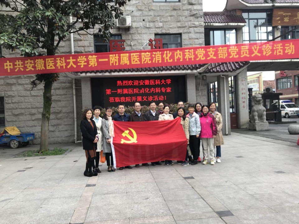 为更好地贯彻医院2018年度从严治党暨党风工作会议上李俊书记与金宗祥书记的讲话精神,消化内科党支部于2018年4月14日,组织党员专家和入党积极分子赴泾县中医院开展义诊活动。孔德润主任、张磊主任、李帮库主任、石海主任、陈丽红博士、鲍峻峻博士等专家们免费为前来看病的患者进行诊疗,孔德润主任还到胃镜室进行现场胃镜下息肉切除的技术指导,让当地的患者在家门口得到了省城知名专家的诊治,受到当地患者的欢迎。张磊主任给中医院的医护进行题为“幽门螺杆菌诊治的最新指南共识意见解读”的精彩授课,将最新的HP诊治的专家共识意见毫无保留的传授给当地医院的医护人员,受到听课医护人员的高度好评。义诊后,全体党员和入党积极分子到红色教育基地进行红色教育活动,追忆革命先烈光辉历史,接受革命传统教育。