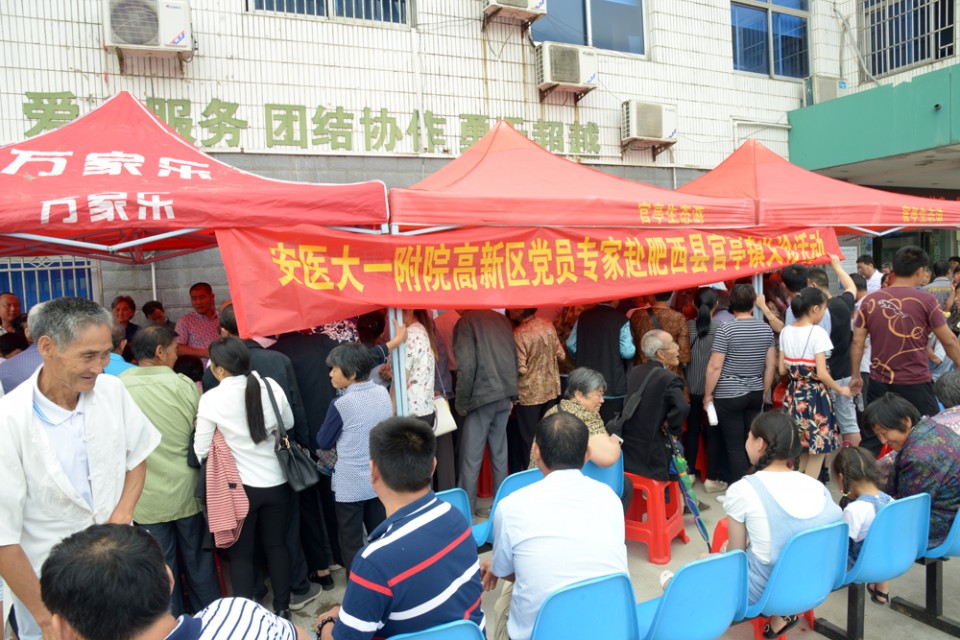 6月23日上午,党员专家们冒着酷暑来到肥西县官亭镇中心卫生院,为当地群众提供免费的疾病诊疗和健康宣教。