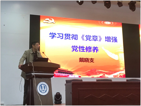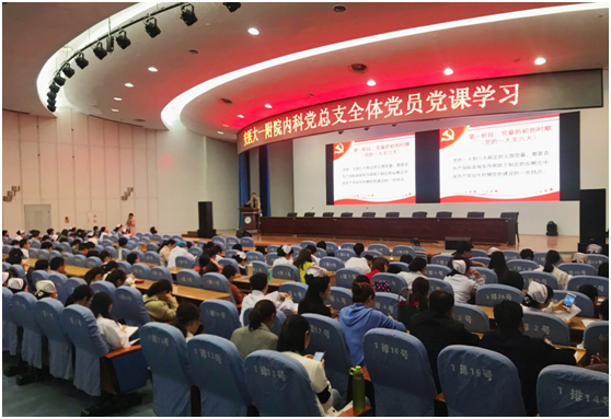2018年3月26日下午5点30分,内科党总支在内科医技楼4楼会议中心对所辖13个党支部的全体党员进行党课学习教育,一附院党委副书记戴晓支同志应邀授课。戴晓支带领内科党总支全体党员同志回顾了中国共产党的发展历程以及不断探索党章的修正之路,详述了多次党章修订的历史背景和修改要点,强调了纪律检查委员会的发展历程和工作职责,并结合十九大党章修改的新思想、新内容进行详细的讲解。大家认真听党课、做笔记,对我党来之不易的奋斗成果有了更深理解,对新时代、新思想、新作为有了更深体会。