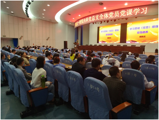 3月26日下午在医技楼会议中心,干部保健中心13党支部全体党员参加了由内科党总支组织的集体党课学习。此次党课,内科党总支邀请了院党委副书记戴晓支同志为大家讲“学习贯彻《中国共产党章程》增强党性修养”。