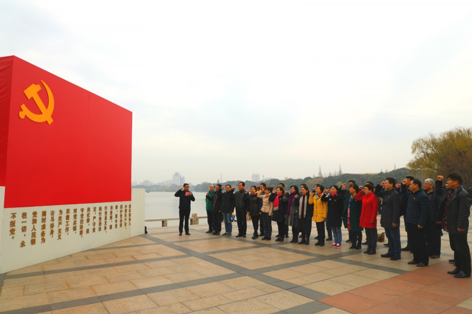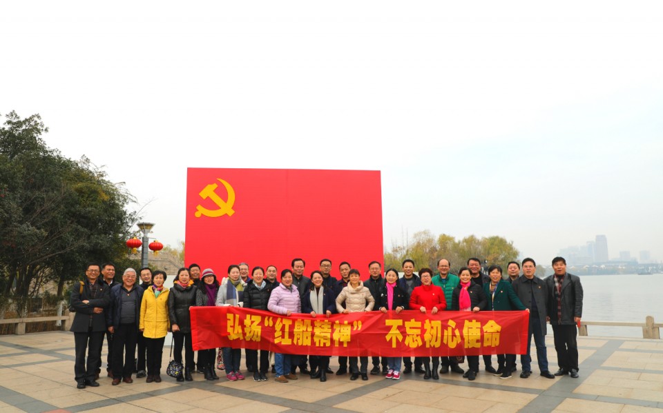 在嘉兴南湖,党员们首先参观了“一大会址”—“红船”。1921年7月,中国共产党第一次全国代表大会在上海秘密召开,后因受到法租界巡捕的干扰而转移到嘉兴南湖的一艘游船上继续进行。“一大”在南湖的续会上审议通过了中国共产党第一个纲领和第一个决议,选举产生了党的第一届中央局领导机构,庄严宣告中国共产党的诞生。 在南湖革命纪念馆宣誓墙前,全体支部党员面对党旗,高举右拳,庄严宣誓,重温入党誓词,再一次接受了心灵的涤荡和思想的洗礼。