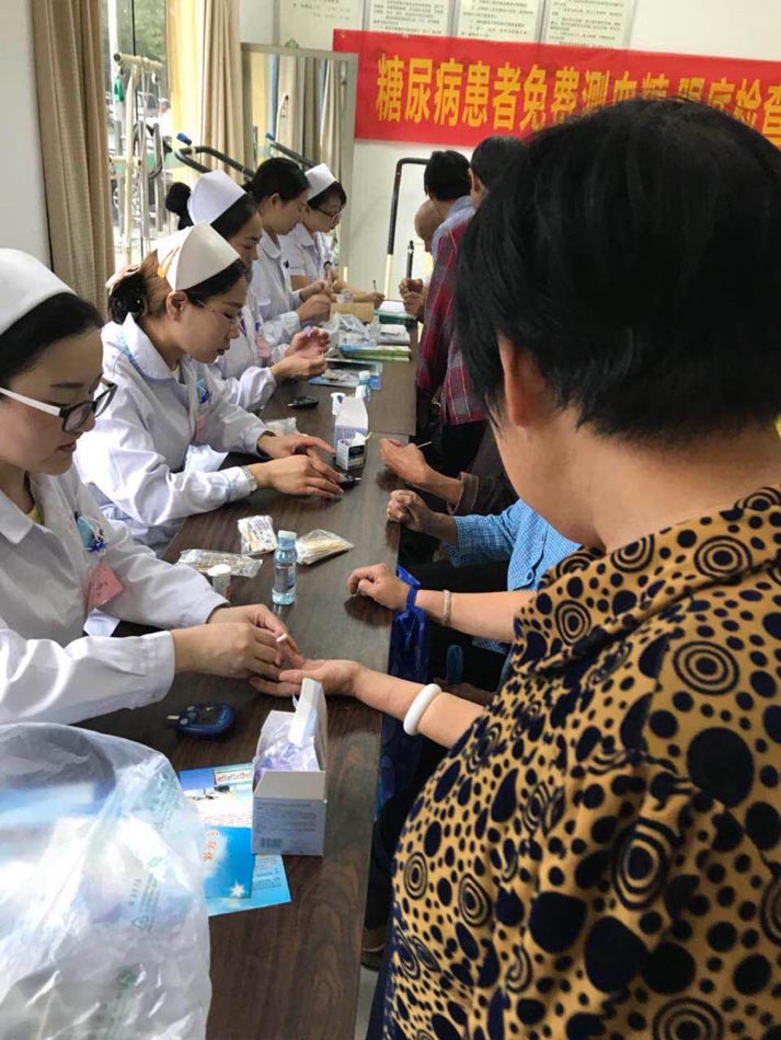 近日,我院内分泌风湿免疫党支部在四里河街道夹塘社区社居委举办了大型义诊活动。此次义诊活动的对象是社区患有糖尿病的居民,内容是免费测量血糖、免费义诊和免费眼底病变筛查、免费健康咨询。进行义诊的专家是安医大一附院内分泌科邓大同主任医师、内分泌风湿免疫党支部书记赵广碧书记、内分泌科护士长副主任护师郑红英、五名临床实践的糖尿病专科护士以及安医大一附院和四里河卫生中心医联体内两名高年资护士。现场糖尿病义诊健康咨询120人次,就诊开处方20张,免费测血糖120人次,免费眼底病变筛查30人次,发放健康教育宣传材料100份。尽管风雨交加,义诊专家的热情丝毫未减,他们用和蔼的态度和精湛的专业知识耐心回答了每一个居民咨询的问题,郑红英护士长为一位糖尿病足老人仔细检查足部病变,耐心交代相关注意事项,赢得了老人的信任和称赞。随后,安医大一附院的邓大同主任和郑红英护士长又为四里河庐园长者照料中心的老人们进行了糖尿病饮食讲座和糖尿病视网膜病变知识讲座。两位内分泌科专家讲课通俗易懂,非常实用,并现场和养老公寓的老人们进行了亲切互动,详细回答了老人们关于糖尿病方面的问题。
