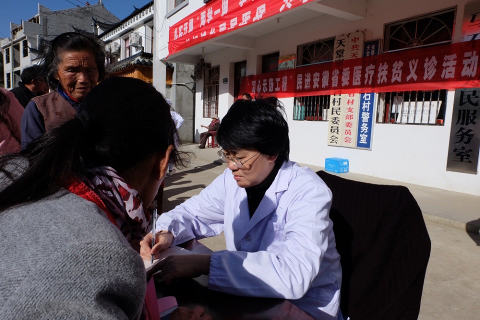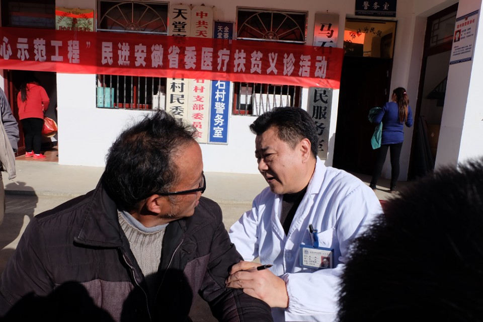 11月11-12日,民进省委在金寨县天堂寨镇马石村开展定点帮扶义诊活动,民进安医大总支数名专家在总支主委、我院骨科主任医师李鸿的带领下参加了此次活动,并赠送了我院建院90周年“爱心小药箱”,受到乡亲们的热烈欢迎。