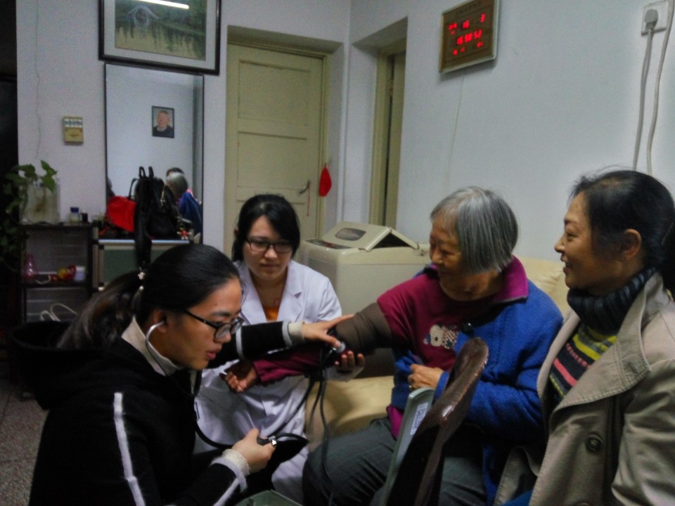 大家先是与老人叙叙家常,询问老人的生活和健康状况,聆听他们的工作历程,敬佩他们为医院的贡献。然后,志愿者主动为他们测量血压和脉搏,进行交流和心理抚慰,并打扫卫生,整理物件,尽力为他们排忧解难。志愿者还与两家老人建立了服务长效联系,争取有求必应。
